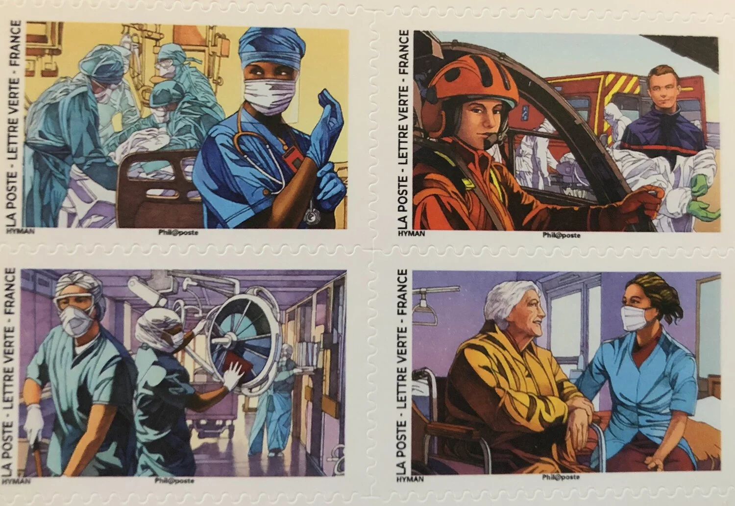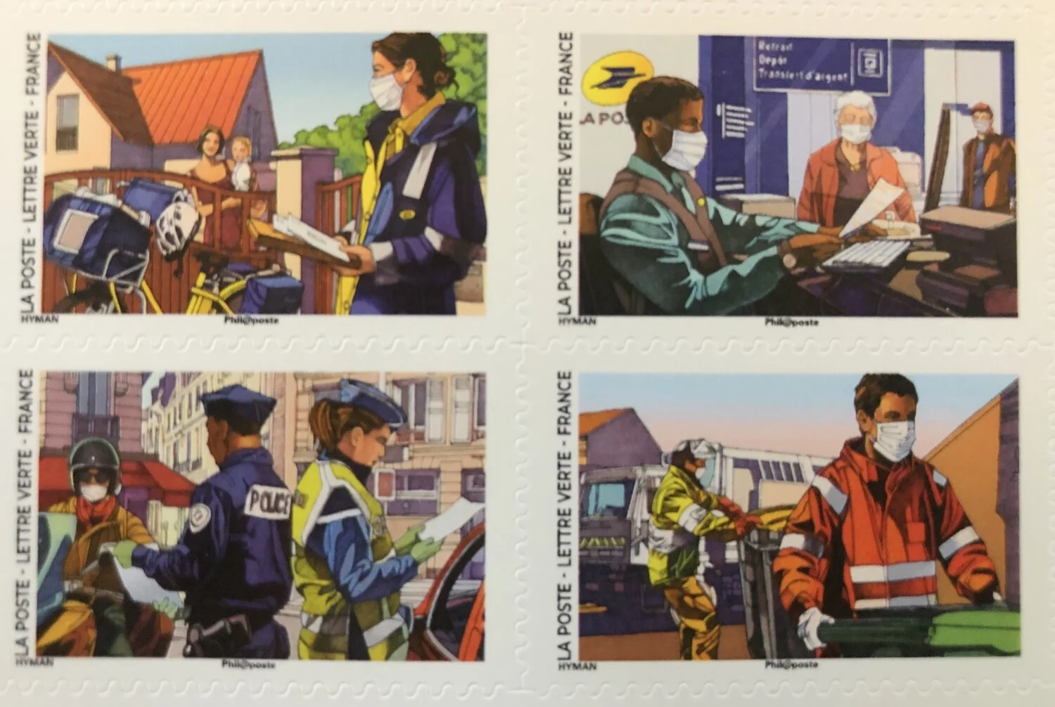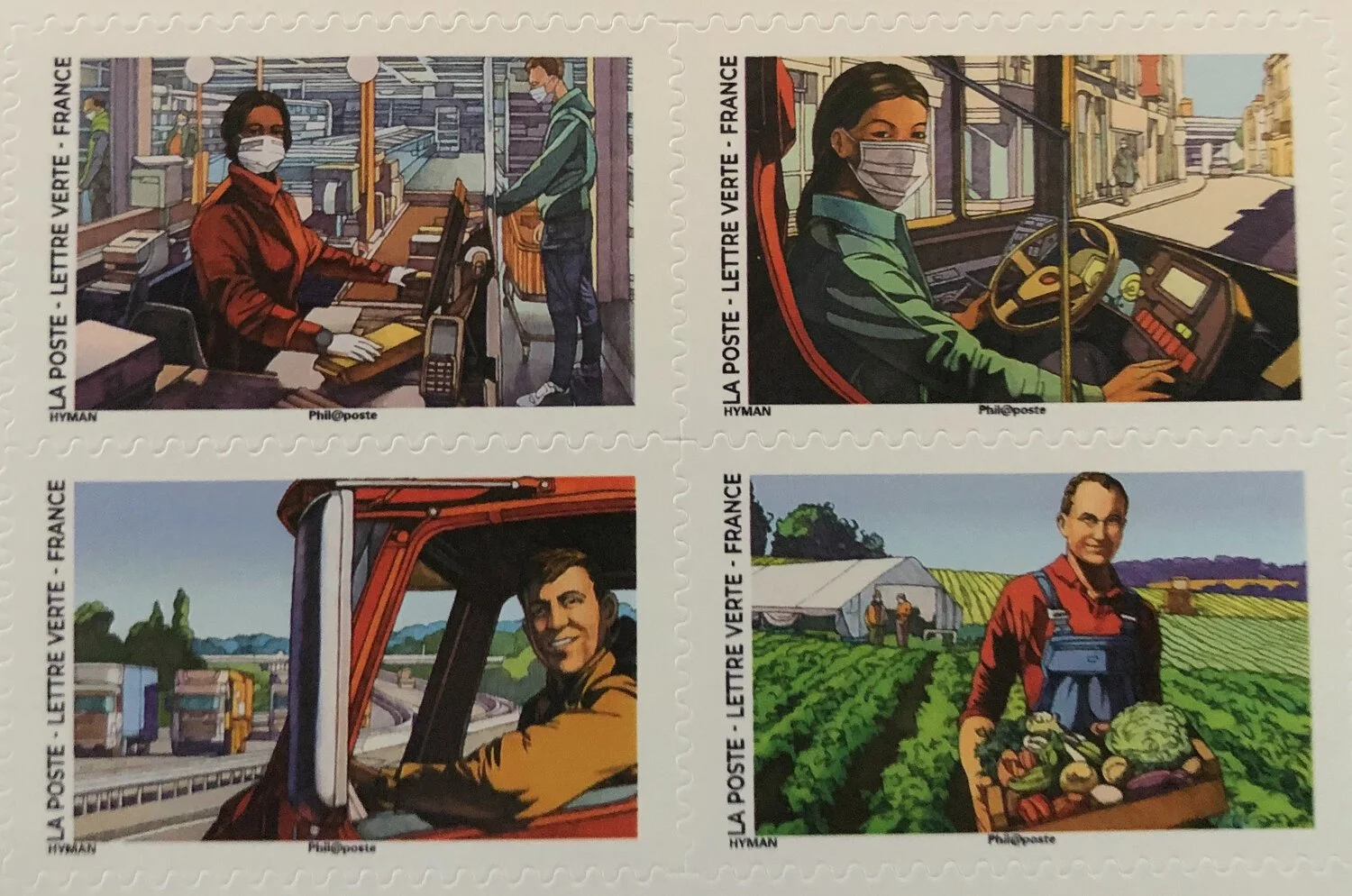 You may have seen my earlier post on April 11 about COVID 19 commemorative postage stamps from around the world. I posted about the Austrian stamp on toilet paper. This series of 12 stamps is from France and honors essential workers.